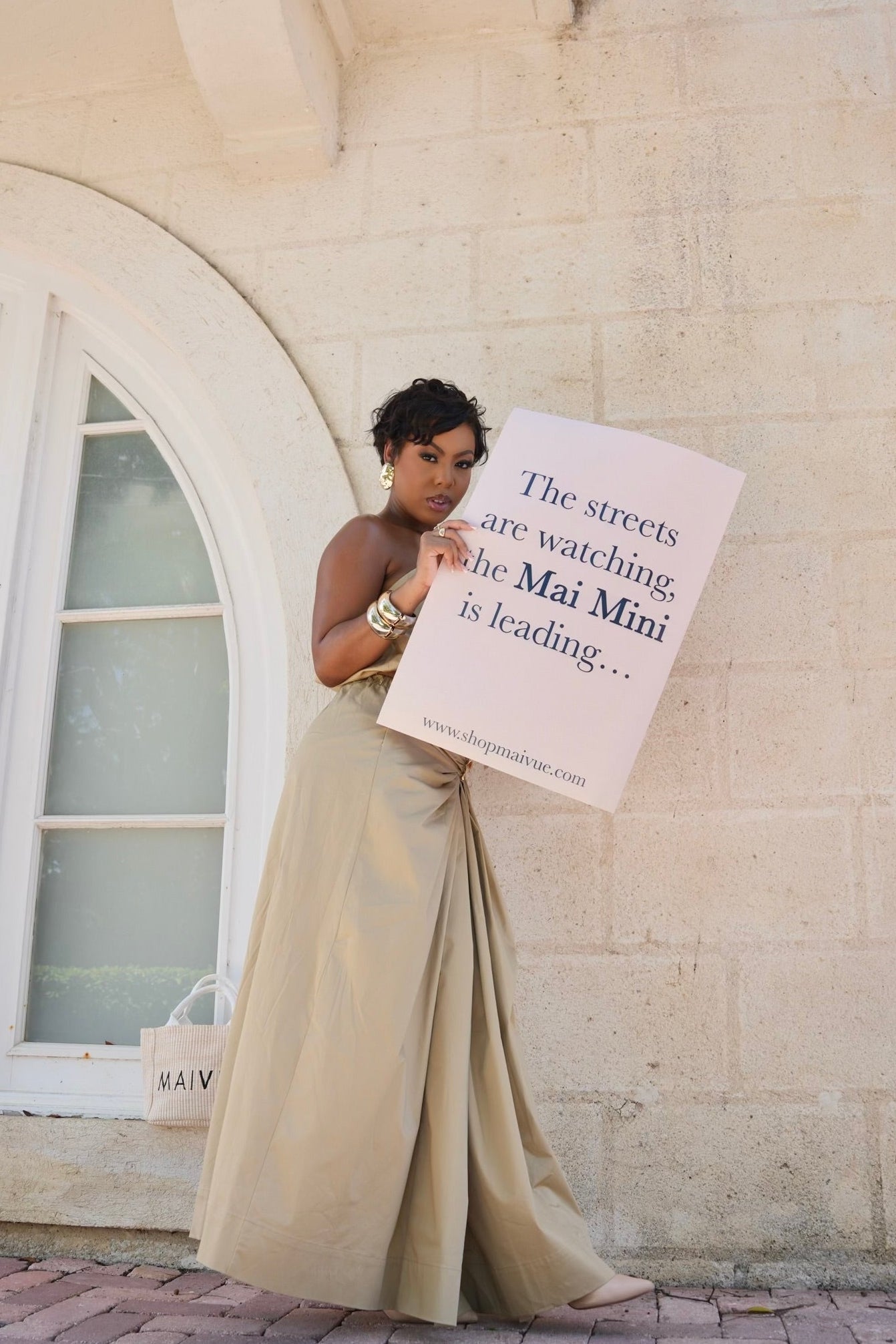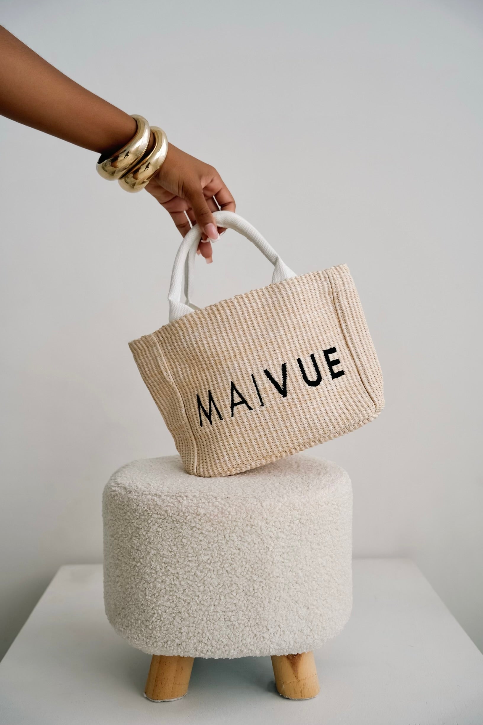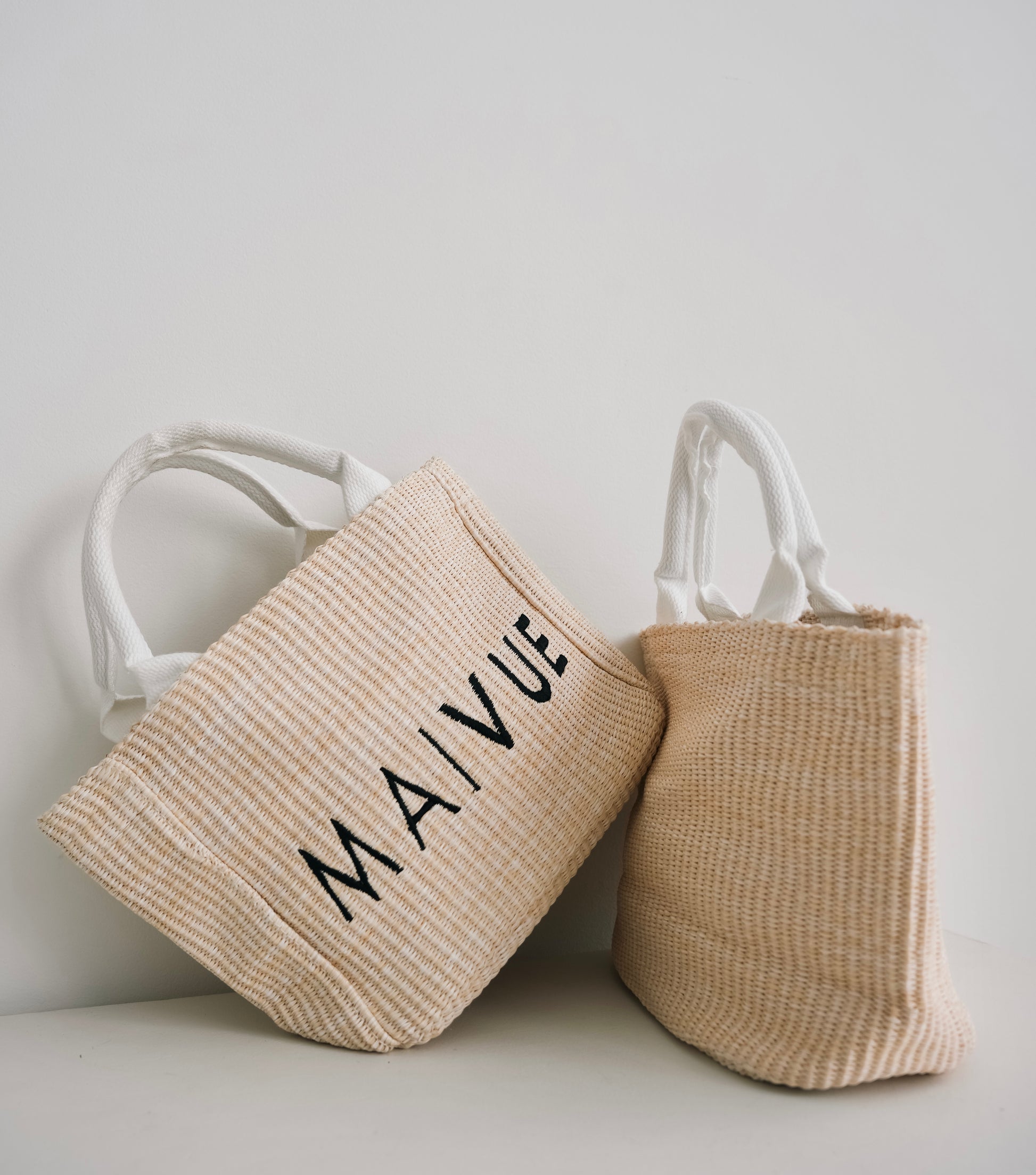 Materials: Woven exterior detailed with embroidered logo, reinforced handles and cotton inner lining. Comes housed in a signature MAIVUE dustbag.